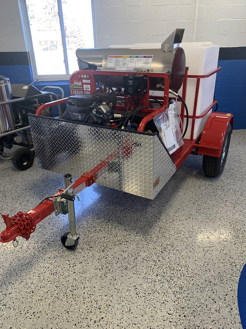 Model 5035HT hot water pressure washer trailer 5 GPM 3500 PSI gas engine