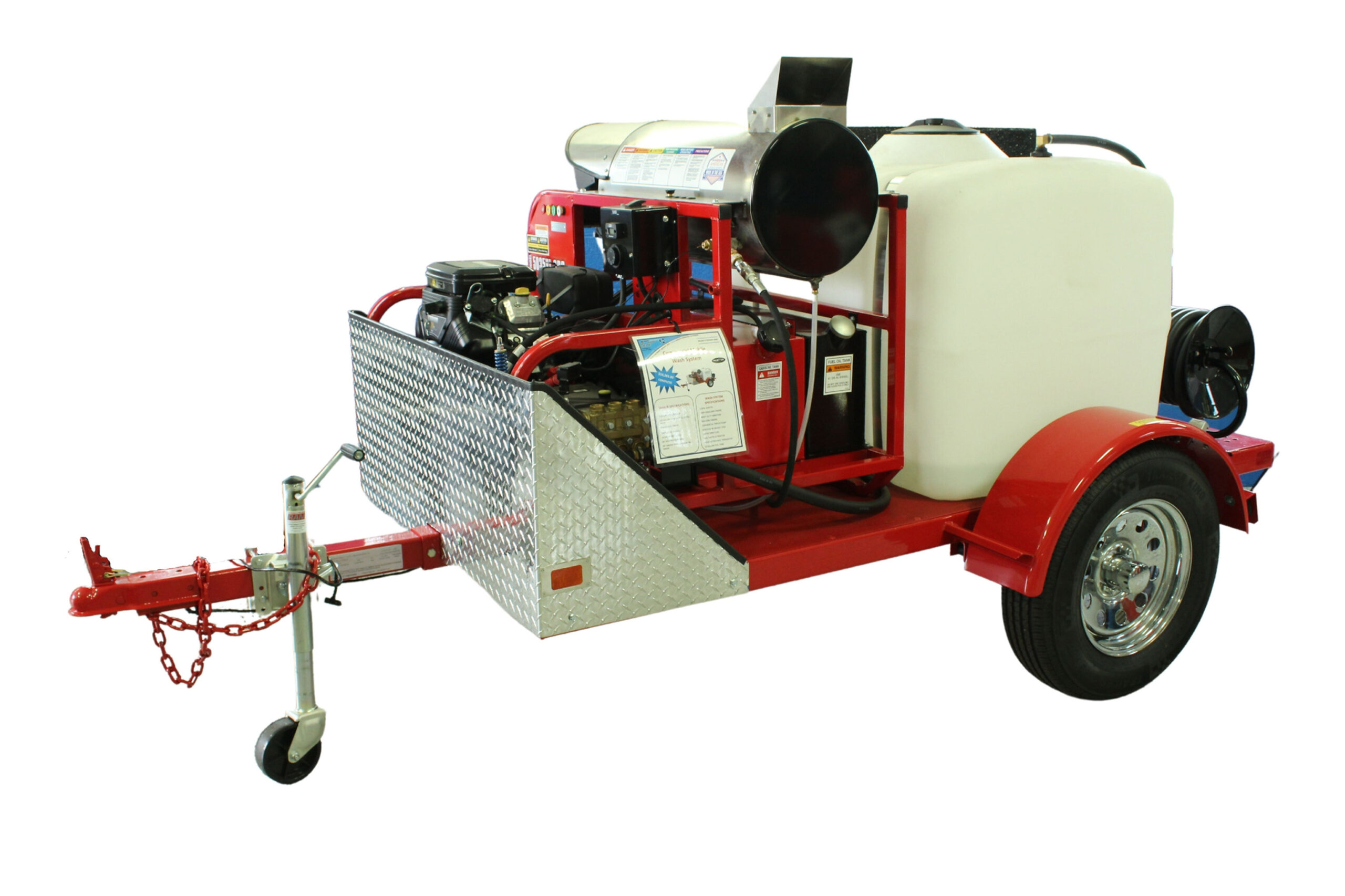 Model 5355ENS hot water pressure washer trailer 5 GPM 3500 PSI gas engine with 200 gallon tank