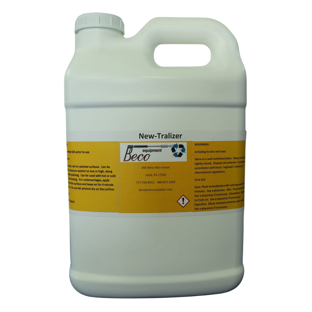New-Tralizer is a non-corrosive chemical formulated to neutralize and remove harmful salt buildup from vehicles and equipment. Designed to protect expensive road equipment, it helps prevent corrosion and extend the life of painted, aluminum, and structural components.