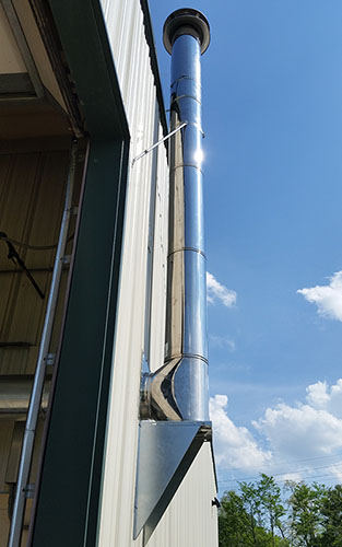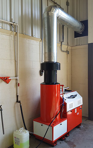 This custom stationary hot water pressure washer features 5GPM 2300PSI of cleaning power, LP fired burner with a chimney.