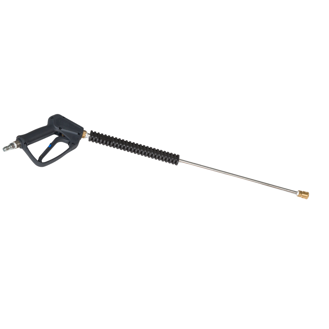 Complete pressure-relaxed trigger gun and wand assembly designed to reduce operator fatigue and increase safety during extended use. Ideal for commercial and industrial pressure washing applications.