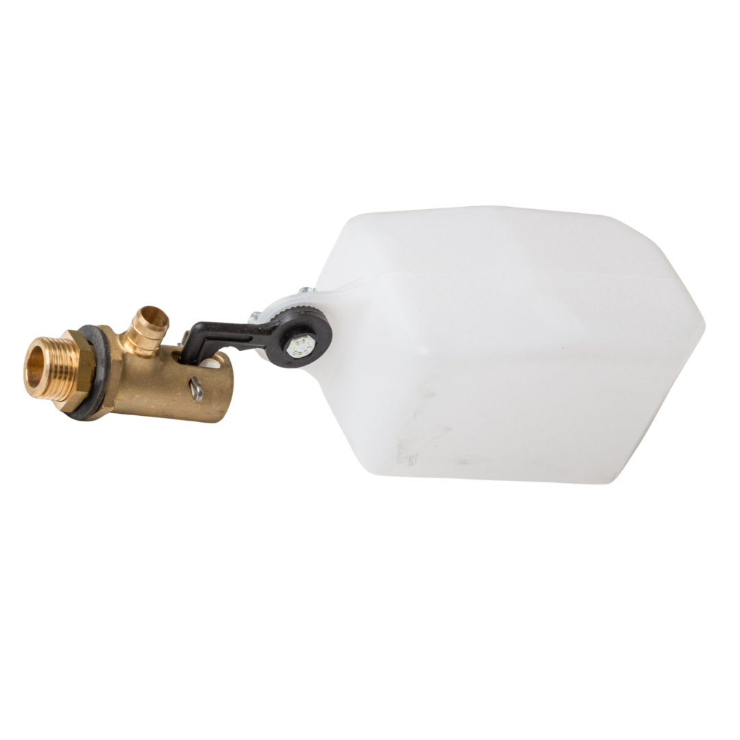Compact float valve designed for automatic water level control in pressure washer and wash system tanks.